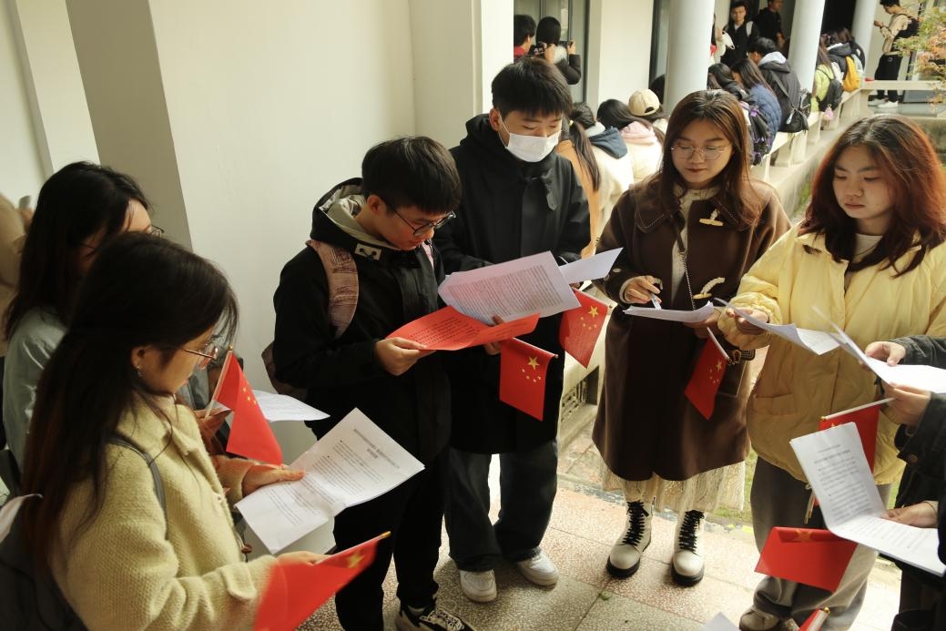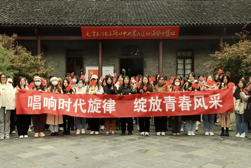 在武汉革命博物馆前,全体学员挥舞着五星红旗,用饱满的热情齐声高唱《没有共产党就没有新中国》和《歌唱祖国》,爱国赞歌唱出了新时代青年的心声,表达了对中国共产党和祖国的热爱与崇敬。