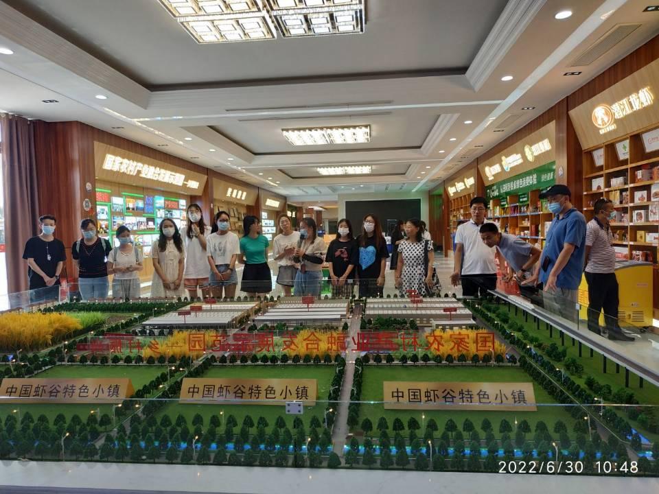 上午,经济统计学专业学生及带队教师前往潜江市中国小龙虾交易中心进行参观学习。湖北潜江龙虾交易中心采取“互联网+小龙虾+流通(O2O+B2B2C)”的独有全产业链模式,设有交易市场、恒温分拣中心、冷链物流配送、客户办公大厅、展示厅等,距沪渝高速后湖入口仅2公里,交通十分便利。在工作人员的讲解下,学生对潜江“虾稻共作”总体概况、虾稻实时监督和外场感知设备、应急预案、全产业链管理、质量安全监测、国内供销及市场分析、产业支撑服务体系等内容进行了全面的了解学习。潜江市以虾稻养殖为核心业务,“虾稻共作”为我国农业提质增效、绿色安全、农民增收创造了一个全新的模式,推动了乡村振兴战略的有效实施。