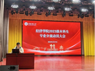 为做好2024年本科学生大类专业分流工作,3月17日晚学院于学术会堂召开经济学院2024年本科学生大类专业分流工作动员大会。学院副院长马楠、各教研室主任和专业教师、2023级专兼职辅导员及2023级全体学生到场参会。会议由华文健主持。