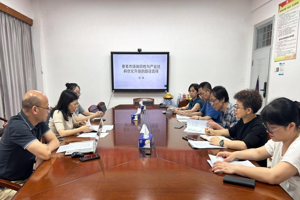 会议开始,林琳老师对其学术论文《要素市场协同性与产业结构优化升级的路径选择》从选题背景、现实案例、理论思路、模型指标、研究结论以及政策建议等六个方面进行全面介绍。胡凯教授从修改论文题目以明确论文重心、删减部分冗余指标以完善指标体系、明确分类标准以优化异质性分析等建议。田孟清教授详细地解析了论文的题目、框架和论证逻辑,并从语言表述、格式规范等方面进一步提出完善建议。其他老师们也积极发言,就指标选取、论文结构调整等关键问题展开了深入探讨。