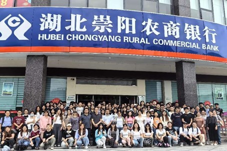 下午,在经济学院7名带队老师的带领下,学生们前往湖北崇阳农商行进行实地实习实践。在银行工作人员的热情接待与详细讲解下,学生们得以初步了解银行的运营状况、基础业务类型以及业务流程,极大地激发了他们的探索欲望和工作热情。