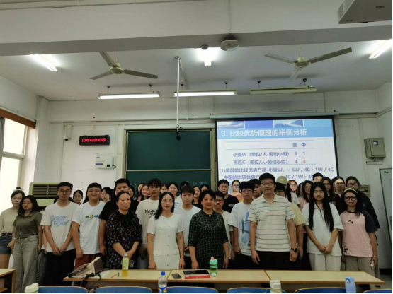 揭老师本次课程主讲比较优势理论,从重商主义产生的背景开始,讲解了重商主义对于财富和贸易的认知,启发同学们思考重商主义观点存在的不足,引出亚当·斯密对重商主义关于“贸易是零和游戏”的观点的批判,提出绝对优势理论,在亚当·斯密的绝对优势理论的基础之上,进一步引出大卫·李嘉图的比较优势理论,并举例具体分析论证比较优势理论。在讲解过程中,揭老师旁征博引,循循善诱、环环相扣,不断启迪学生进行深入思考,引导学生以历史的眼光去看待国际贸易相关理论,揭老师强调,不同国家尽管有利益分歧,但随着分工和经济一体化的深化,不同国家之间的贸易及合作的重要性更加突出,人与人之间和国家之间一样,应该以更加开放和包容的心态去合作,实现双赢。