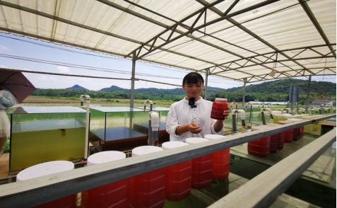 在赤壁市娴子生态种养殖专业合作社农田鸭场示范基地,田淑娴理事长介绍自创的“稻虾鸭”综合种养新模式,该模式打造高效的“菌-藻-稻-虾-鸭”生态系统,减少化肥农药用量,增加稻田的自我净化能力,实践团队感受到现代农业科技的巨大魅力。