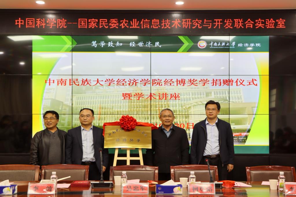 本站讯(记者:黎鉴)为加强校友联系,助力学院人才培养,推动经济学院教学科研事业发展,10月30日下午,经济学院在15号教学楼801会议室举行经博奖学捐赠仪式暨学术讲座。桂林理工大学旅游与风景园林学院院长、教授,旅游规划与环境管理专业博士研究生导师吴忠军、桂林理工大学旅游与风景学院副教授邓敏,洛阳市规划建筑设计研究院有限公司工程师王山林,桂林理工大学马克思主义学院中特理论教研室主任、助理研究员张露萍、桂林理工大学旅游与风景园林学院助理研究院徐苇苇等校友参加。经济学院党委书记柯尊韬、党委副书记、院长李波、党委副书记刘君强、副院长熊芳、孟庆雷及学院教授、博士生导师陈祖海、李忠斌、张英参与讲座,学院部分师生到场聆听。会议由柯尊韬主持。