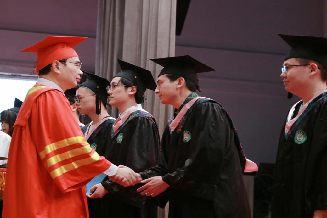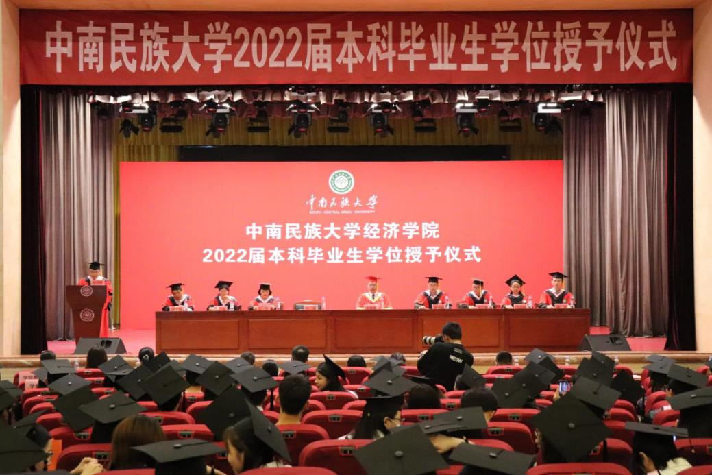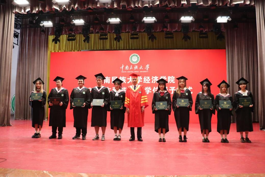 经济学院副院长毛中明宣读了学士学位授予决定。柯尊韬在总结时希望经济学院2022届毕业生要始终牢记习近平总书记对青年学子的谆谆教诲和殷殷嘱托,用脚步丈量祖国大地,用眼睛发现中国精神,用耳朵倾听人民呼声,用内心感应时代脉搏,在建设社会主义现代化国家新征程和实现中华民族伟大复兴的历史洪流中放飞梦想、追逐梦想、成就梦想。校长李金林教授为毕业生们颁发学位证书,并一一正冠拨穗,合影留念。