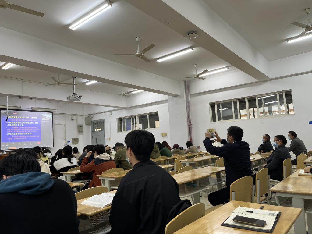 11月15日上午,校党委常委、纪委书记韩叶盛深入经济学院《国际物流》课堂听课调研,现教中心主任张淼、副主任喻胜辉、舒振宇,教务处副处长李立,招就处副处长潘宏飞,预科教育学院副院长马洁和经济学院有关负责同志一同听课。