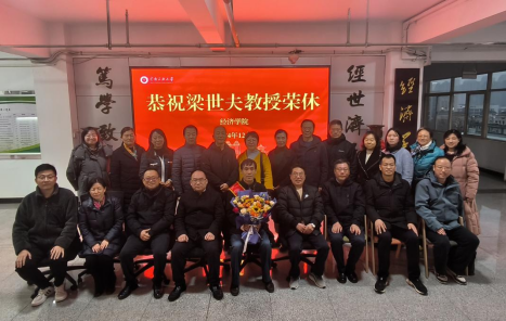 仪式上,经济学院领导为梁世夫教授佩戴绶带,送上鲜花和美好祝愿。全体参会人员与梁教授合影留念,共同记录这一温馨而庄重的时刻。