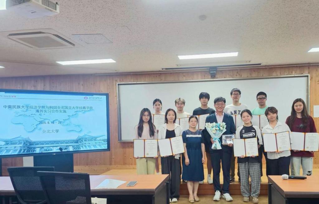 此次韩国全北国立大学实习项目是经济学院首次开展海外暑期专业实习的有益尝试,多维提升学生素养,全面赋能学生成长,也进一步巩固了两校之间的友好合作关系。这一“实习破冰”不仅是学校“双一流”建设中“实践驱动”育人模式的重要突破,更让学生将课堂理论与国际产业实践深度融合,为经济学科的国际化实践教学积累了宝贵经验。双方将继续携手推进实质性合作,创新交流机制,为培养更多高素质、国际化经贸人才而共同努力。