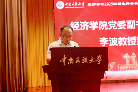 在庄严的国歌声中,经济学院2025级新生开学典礼正式拉开帷幕。院长李波代表学院致辞,对2025级新生的到来表示热烈欢迎与祝贺。他回顾了学院自1984年建院以来的发展历程,强调学院始终坚持与国家发展同呼吸、与民族振兴共命运,在学科建设、师资队伍、科研创新、人才培养等方面取得了显著成就。结合当前发展形势,李波从三个维度对新生提出殷切期望:一是要厚植“经世济民”的家国情怀,将个人成长融入国家发展大局,主动担当时代赋予的使命责任;二是要锤炼“数字融合”的创新思维,紧跟时代步伐,努力成长为适应经济社会发展需求的复合型人才;三是要秉持“笃学致知”的治学态度,夯实专业基础,做到学思用贯通、知信行统一。
