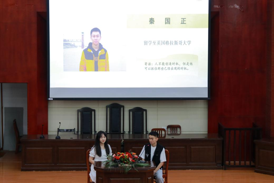 访谈中,六位优秀毕业生代表从出国留学,备战考研,社团生活,专业学习,就业规划和志愿活动等不同方面分享自己的经验。即将赴英国格拉斯哥大学留学的秦国正结合自己的留学申请和准备经历,鼓励同学们要增强信息搜集能力,勇于尝试,坚定目标;考研至中央财经大学的王伊琳分享了确定目标、时间分配、心态调节和院校选择等考研经验,建议选择考研的同学们早做准备、做好规划;考研至云南大学的王雅杰希望同学们打破思维范式,勤于自我检视,不给自己设限,用有计划的努力不断突破自我;保研至中南财经政法大学的朱莎莎分享了专业学习方法和参与各种竞赛的经验,就学习与工作的平衡问题给同学们提出了自己的看法;就业至美团产品经理岗的徐艺畅分享了自己的求职经历,对于求职中面试时材料的准备、求职的技巧等问题进行了详细解答;加入研究生支教团的闵堂睿讲述了自己加入研支团的心路历程和大学四年的志愿经历,希望同学们广泛投身于志愿活动中,为自己的青春添光增色。