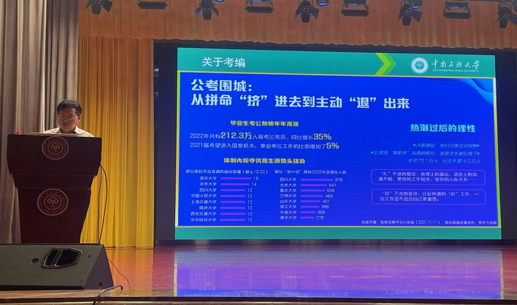 根据工作方案,李春雷副处长为全体同学开展了就业导航辅导,万学教育海文考研湖北分校校长谭晓禹为全体考研学生进行了考研择校技巧和复习攻略指导,北京诚和敬投资有限公司副总经理、经济学院校友邓发明通过在线方式进行职业发展分享,辅导员熊岳炜对政策性就业和基层就业项目做了详细介绍,万学教育魏宏宇总监为求职学生开展了简历制作、面试技巧和无领导小组讨论等方面的求职技能培训。