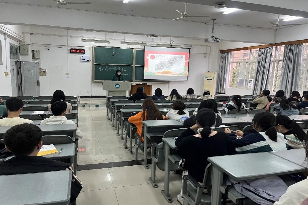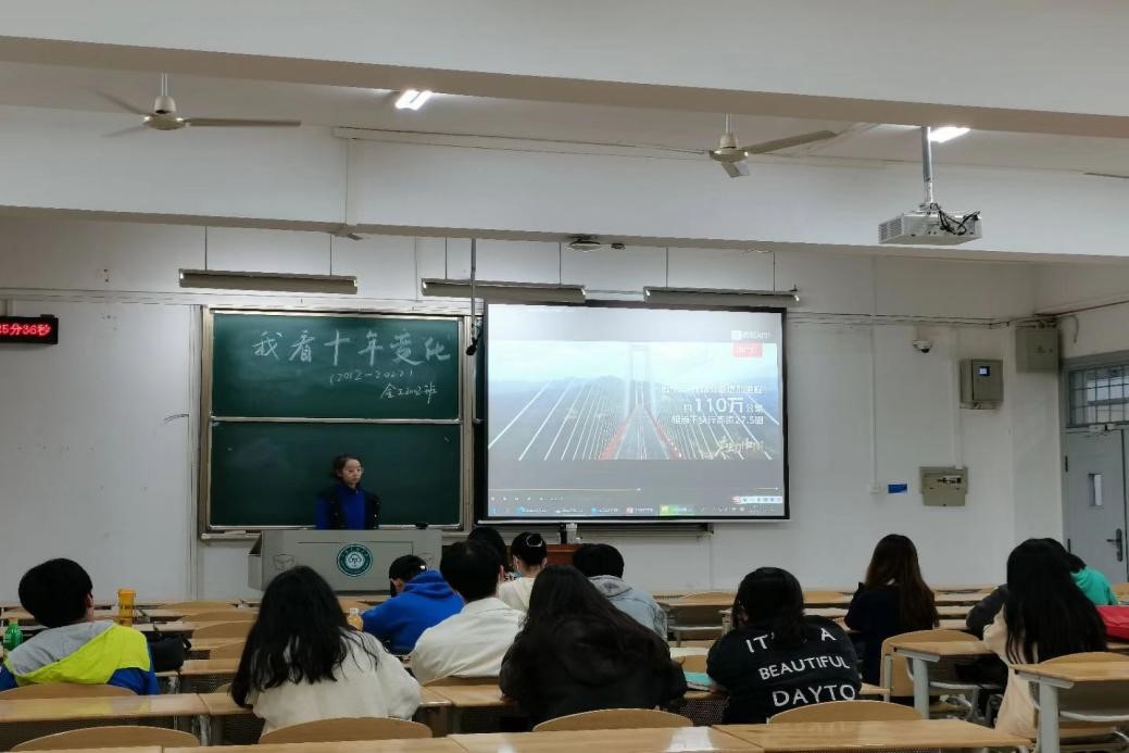 班团会上,各班深入学习贯彻习近平新时代中国特色社会主义思想,结合先进模范事迹探讨了党和人民奋进历程及爱国主义的时代内涵,回顾并交流了新时代十年伟大变革在中华民族发展史上的里程碑意义,围绕如何弘扬爱国主义精神、做奋发向上的时代青年进行感想分享。此外,各班还结合学生发展的实际情况,设计筹备了形式多样的班团会环节:金工1901班组织同学们结合学习贯彻习近平新时代中国特色社会主义思想多维度畅谈感想,思考新时代新青年的使命担当;经济试点2001班通过组织观看主题相关视频,感受国家发展历程和当代人物风采;经统2101班开展主题知识竞赛问答,帮助同学们牢固掌握党的基本理论知识;经济学类2210班围绕航空航天、体育发展、基础建设等多方面成就进行详细讲解,引发了同学们的热烈讨论。