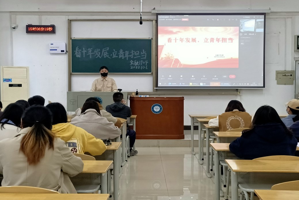 为迎接党的二十大胜利召开,厚植学生爱党、爱国、爱社会主义的情感,激发学生的民族自豪感和社会责任感,9月26日至10月7日,经济学院各年级组织各班以线上线下相结合的方式开展了“爱国主义教育”和“我看十年变化”主题班团会,各班班导师全程参与指导。