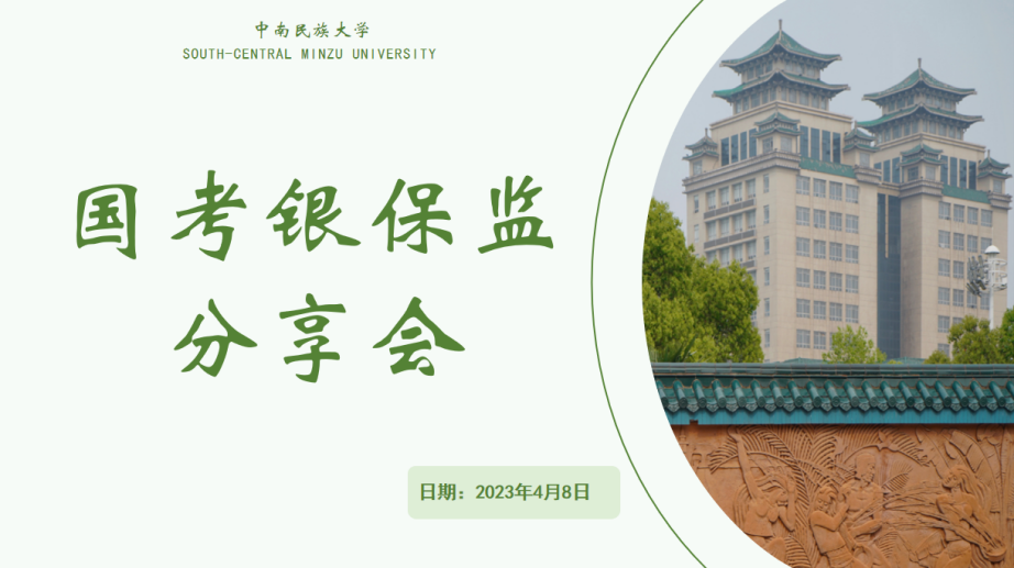 2023年4月8日晚,保险学专业开展了一场国考银保监线上宣讲会。本次会议邀请到现就职于人民银行和湖北、广西、宁夏、河南、贵州五个片区银保监分局的十三位校友,分享其报考原因、备考经验和工作感受,同学们收获满满。