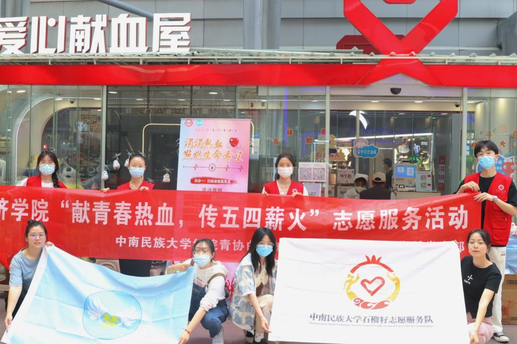 为发扬青年志愿者友爱互助、和谐进步的志愿服务精神,大力宣传无偿献血知识,提高大众无偿献血意识,4月29日至5月3日,经济学院青年志愿者协会白翼护梦项目组联合武汉血液中心献血招募科党支部在光谷世界城献血屋举办了“献青春热血,传五四薪火”五四青年节主题团日活动。