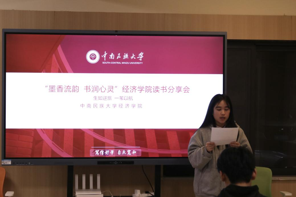 为促进知识共享与传递,推动校园文化建设,11月25日晚,经济学院在北区“一站式”学生社区举办了“墨香流韵书润心灵”第三期读书分享会。2023级辅导员徐文洋及部分经济学院学生到场参加,会议由院学生会学习部干事张陈泓玥主持。