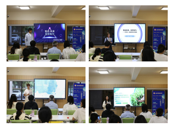 10名参赛选手依次登台展开精彩演绎。张子薇提出在AI浪潮中需坚守人类创造力、情感理解与道德判断的核心竞争力,倡导通过技术赋能、跨学科教育及伦理引导实现人机协同进化;图玛日斯·买买提艾力以AI赋能传统制造业为例,呼吁经济学子革新理论体系,通过智能技术实践推动产业升级;王湘宁构建“智能底座+人文精神升维+知行合一实践”三维模型,号召培养既驾驭算法又守护伦理的变革“摆渡人”;王意博主张突破传统经济学范式,通过智能重构知识体系、跨学科融合创新、产业实践赋能三重路径,实现技术理性与人文价值的双重使命;苏芳提出“智能+伦理”双轮驱动战略,以金融科技赋能普惠金融,在创新中坚守社会责任;张瑞瑄倡导构建“智能+经济”复合型知识体系,强调以实践连接理论与创新;黄枫烨解析区块链技术驱动的金融变革,提出“智能+经济”能力重构双轮驱动模型,培养推动金融创新与强国建设的超级节点;宋熠昕通过云南怒江数字钱包、贵州毕节养蜂人案例,揭示数智技术重构金融版图的趋势;李思颖系统阐述AI与农村经济融合的“重要性——实践运用——价值链升级”逻辑链,提出构建乡村产业智能生态的发展路径;余芷萱基于国内外典型案例与政策趋势,提出“跨学科能力+实践创新”应对策略,强调在数智浪潮中把握机遇、突破挑战的双重转型方向。
