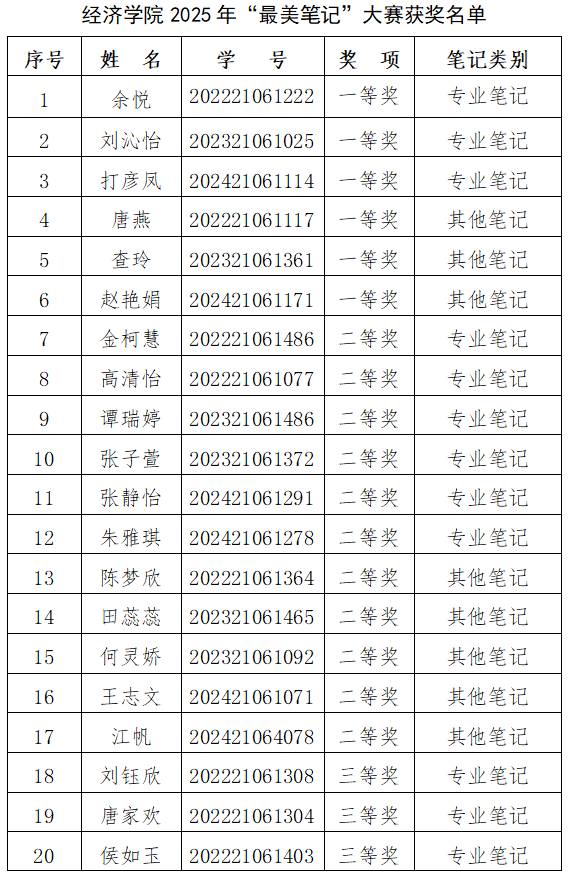 本次大赛挖掘优秀学习案例,发挥榜样引领作用,激励学生养成规范记录、高效整理的学习习惯。“最美笔记”作为学风建设的缩影,展现出学生的治学态度与精神追求。未来,经济学院将继续加强学风建设,创新育人形式,培育更多扎实功底与创新精神兼具的经济领域人才,不断提高人才培养质量。