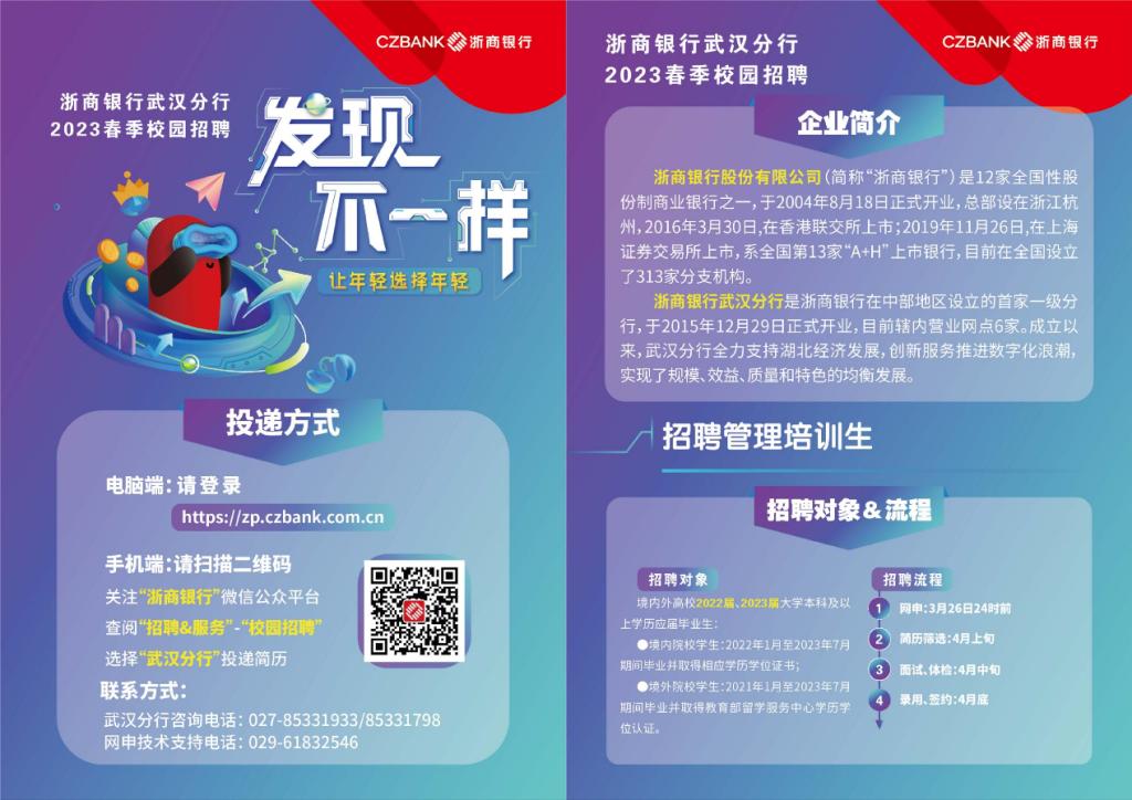 浙商银行武汉分行是浙商银行在中部地区设立的首家一级分行,于2015年12月29日正式开业,目前辖内营业网点6家。成立以来,武汉分行全力支持湖北经济发展,创新服务推进数字化浪潮,实现了规模、效益、质量和特色的均衡发展。