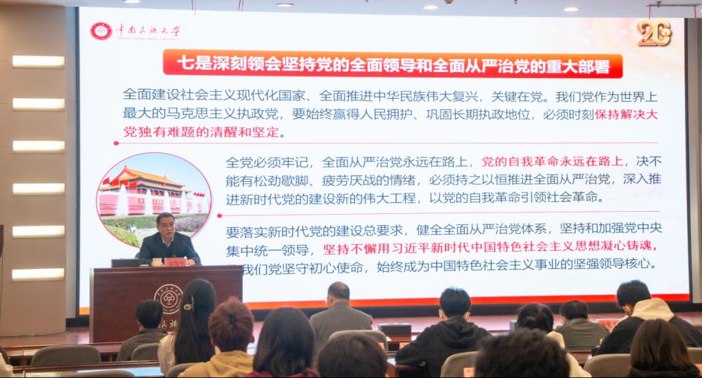 李川国在总结中要求全体师生以此次辅导报告精神为指导,掀起学习宣传贯彻二十大精神的热潮。他还系统深入地解读了学校最新的疫情防控政策要求,希望广大同学、教职员工在当前疫情依然严峻的形势下,自觉增强对疫情防控工作重要性的认识,自觉遵守疫情防控的各项要求,自觉践行并凝聚防疫、抗疫的正能量。