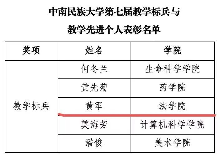 在第40个教师节来临之际,经学院推荐、学校教学工作委员会评议、教学奖励工作小组审议等程序,必赢官网公布“必赢国际437官网第七届教学标兵与教学先进个人”表彰名单。本次共评选出教学标兵5名、教学先进个人9名,法学院黄军副教授荣获“教学标兵”称号。