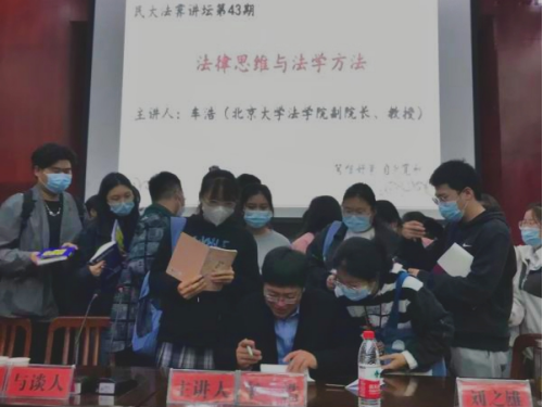 在谈到法律职业时,车浩教授带领同学们回顾了我国法律的发展历程。传统上,我国“诸法合体,以刑为主”,重视律学。清末,沈家本主持修律,标志着传统中华法系的瓦解。在此阶段,我国主要向日本学习法律,采用“三板斧”模式:翻译日语书籍;邀请日本学者指导;派遣学生留学日本。1949年以前,法律都是处于朝令夕改的状态,法律缺乏稳定性,在这个动荡的时代,法律人并非时代的主角。现如今,中华民族还在“求变”的过程中,还面临不同程度的内外交困,社会管理秩序也尚未完全稳定。现阶段,我国兼有建设国家与治理国家这两大任务。在建设国家的过程中,很多事情都会与法治理想出现矛盾,因此以法治为事业的法律人依然任重道远。但是,相比50年前、100年前,其境遇已经有了极大改善,前景光明。车浩教授鼓励同学们积极了解我国法律的现状及其面临的问题,既要回望过去,也要看向未来。