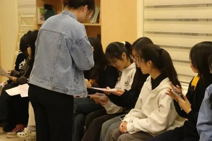 同学们于空中书屋中就座,对本次参观活动的感受与收获进行分享交流,并提出了一些改善建议。一些同学认为可以在空中书屋播放轻缓的音乐、设置清新香氛,以增加书屋的艺术气息;还有同学希望可以增设线上咨询服务,让心理咨询更加生活化和便利化。值班助管同学还为大家分发纪念书签和心理咨询宣传单页,使大家能够更充分地了解并宣传心理咨询中心。
