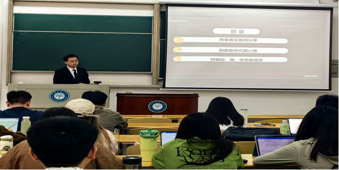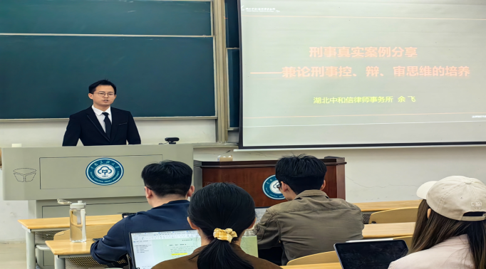2025年4月22日下午,武汉市武昌区周冶陶公益服务中心(“调解网”)研究生实习实践教育基地实务专家、湖北中和信律师事务所合伙人余飞律师应邀来到我院,为2024级法律硕士讲授以“刑事真实案例分享——兼论刑事控、辩、审思维的培养”为主题的法律实务专题课程,赵波老师主持参与了此次专题授课。