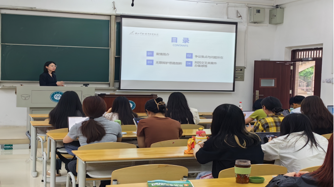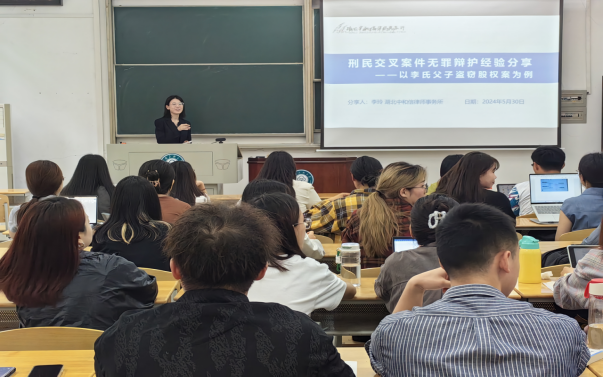 2024年5月30日上午,武汉市武昌区周冶陶公益服务中心(“调解网”)研究生实习实践教育基地实务专家、湖北中和信律师事务所李玲律师应邀来到我院,为2023级法律硕士讲授以“民刑交叉案件实务”为主题的法律实务专题课程,赵波老师主持参与了此次专题授课。