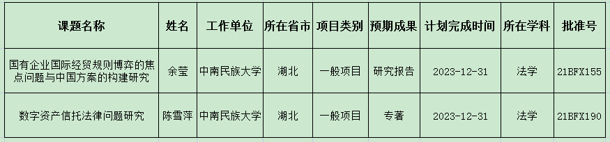 【项目立项】必赢国际437官网法学院陈雪萍教授、余莹教授获得国家社科基金一般项目立项