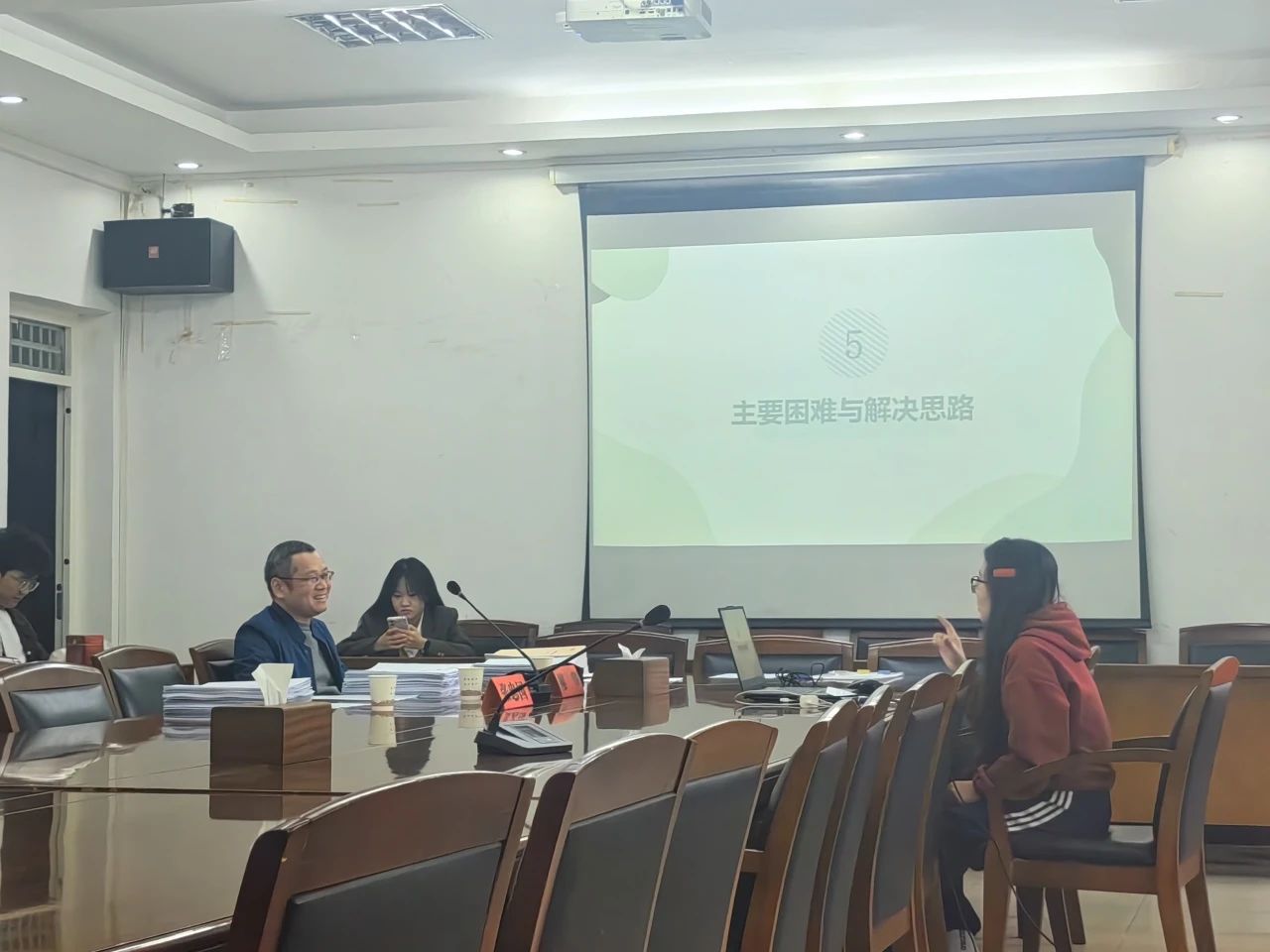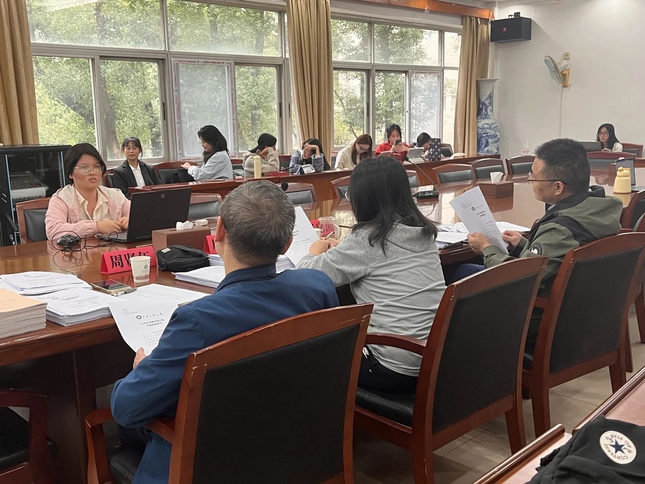 11月8日当天,创实部工作人员提前一个小时到达会议室对团队的相关资料进行分类与整理,准备好评分表和水笔。