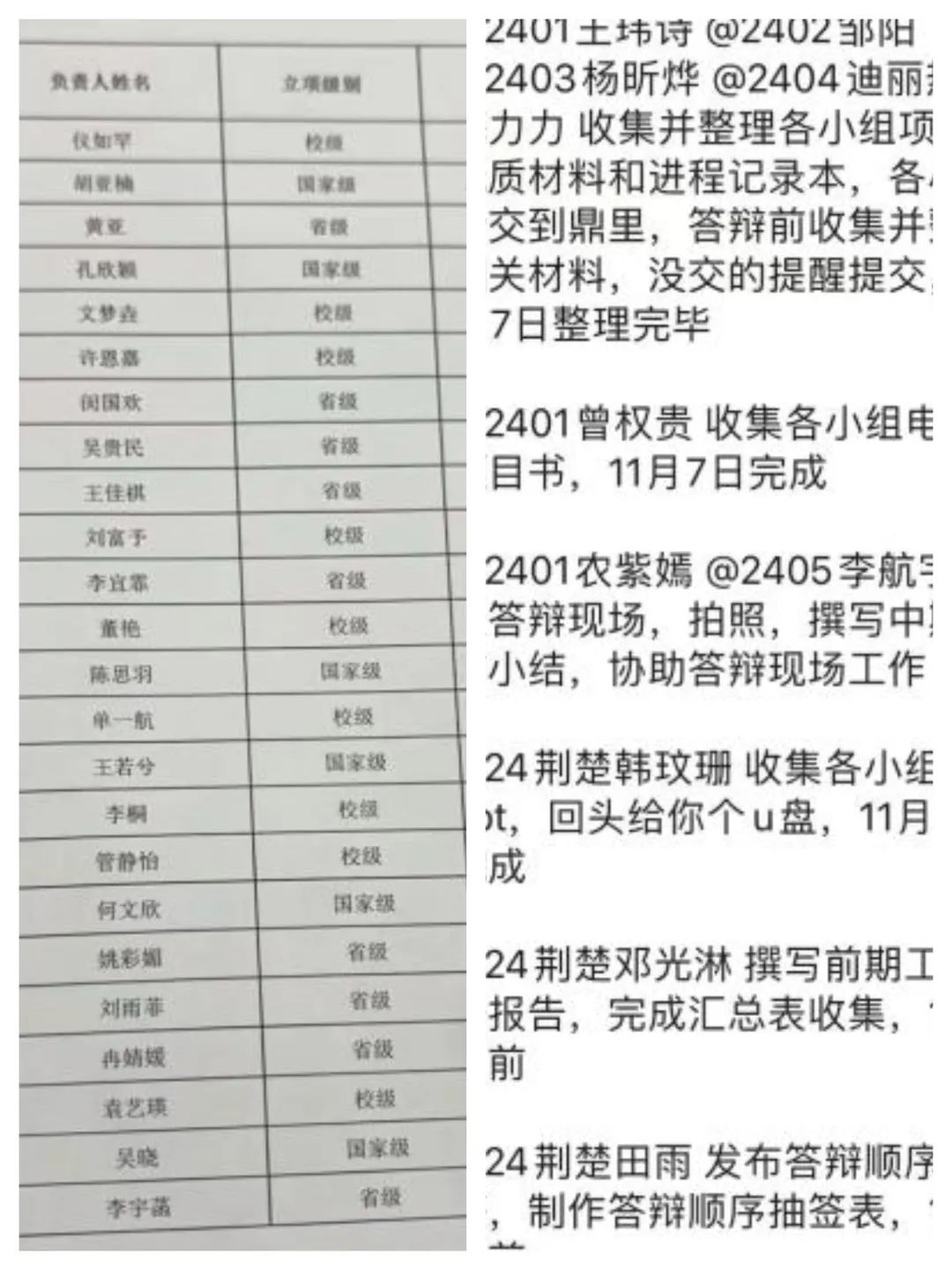 答辩全部结束后,创实部成员不仅再次整理检查了中期答辩相关的纸质档文件,严谨地筛选出文件不规范的小组,并及时通知其重新更正提交纸质档与电子档文件,确保了答辩资料的完整性和规范性,且第一时间制作项目阶段性成果收集表发送至法学院创新创业群,为后续工作的开展奠定了坚实基础。