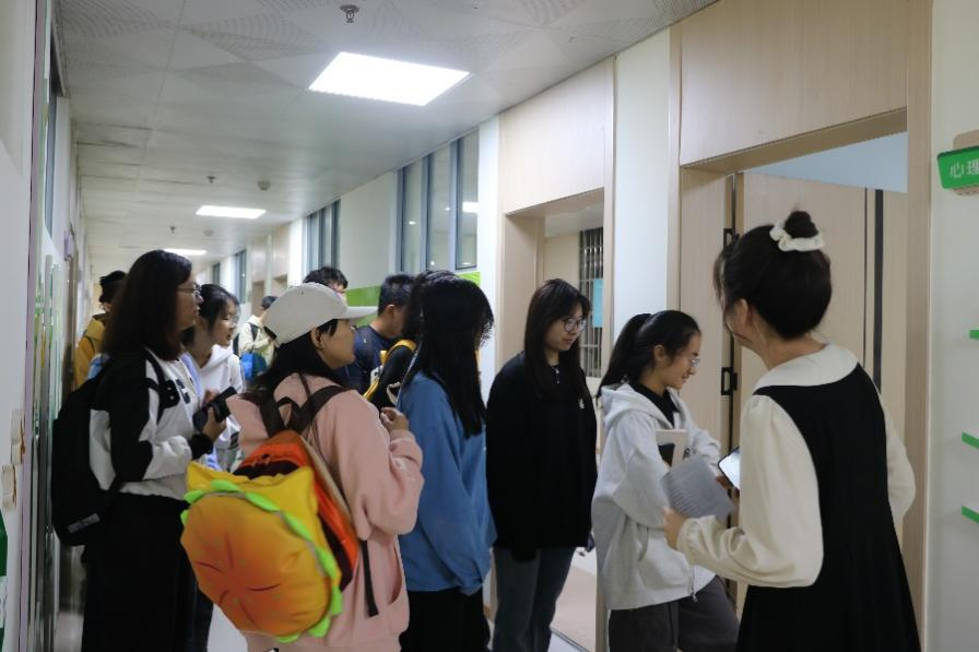 首先,心理老师为同学们展示了师资队伍信息墙,介绍了专业且富有爱心的心理辅导团队。心理咨询中心设有六间咨询室和预约接待室,同学们可以根据自己的喜好和需求作出不同的选择。在这里,专业的咨询老师为大家提供心理疏导,心理委员也会进行朋辈辅导,让每一个寻求帮助的人都能感受到温暖与支持。