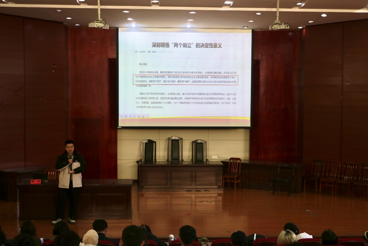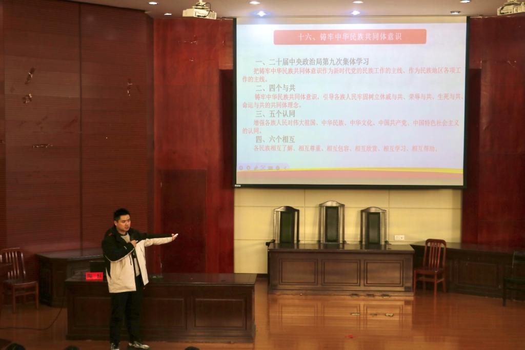 在课程的尾声,陶恒老师告诫同学们要深刻领悟“两个确立”的决定性意义,增强“四个意识”,坚定“四个自信”,做到“两个维护”,自觉在思想上、政治上、行动上同以习近平同志为核心的党中央保持高度一致。最后,他着重强调了助力实现中华民族伟大复兴的中国梦的重要性,并提出青年团员要把握好铸牢中华民族共同体意识的思想路线,不断提升自己的民族素养和团结意识,为构建中华民族共同体贡献自己的力量。