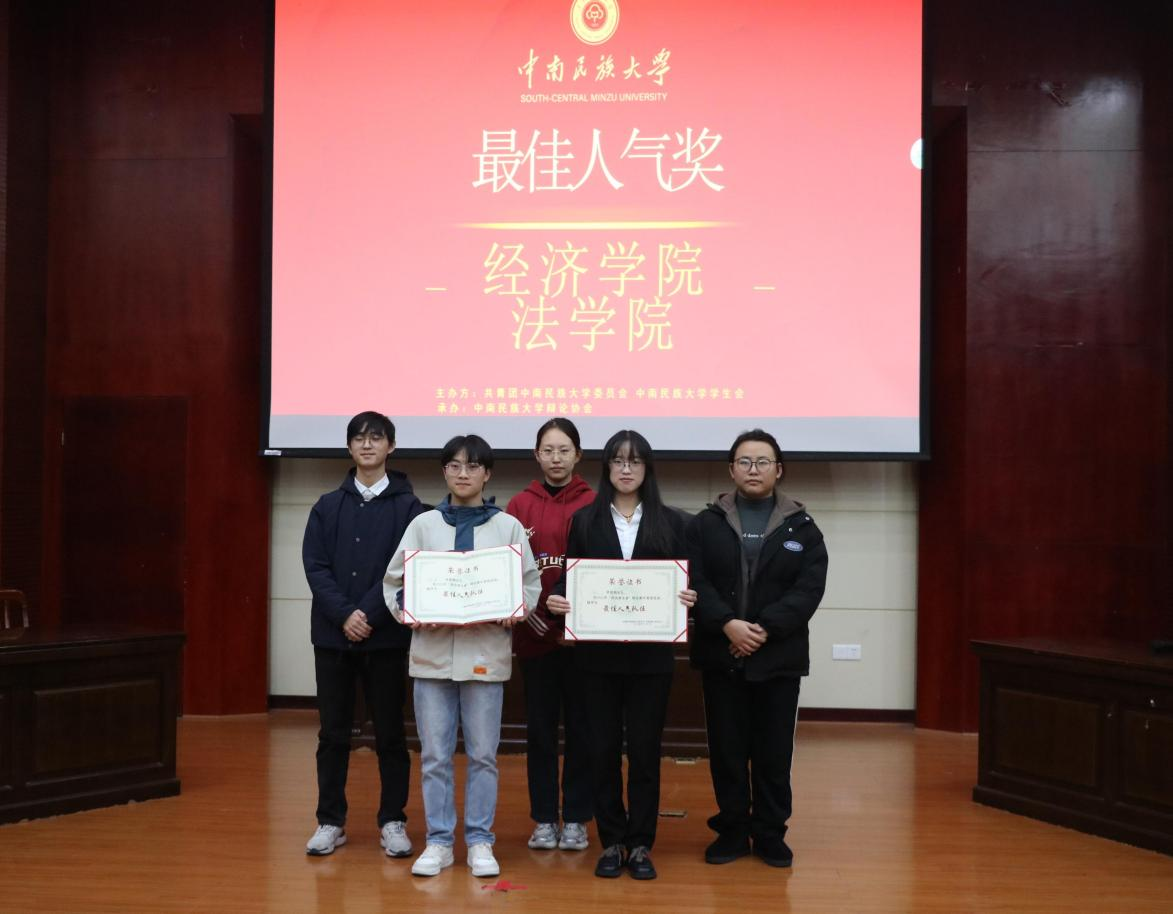 最后,经过评委们的讨论打分,本次“悦动新生季”辩论总决赛的总结果如下:法学院代表队获得冠军,文学与新闻传播学院代表队获得季军,经济学院代表队和法学院代表队获得最佳人气队伍奖。