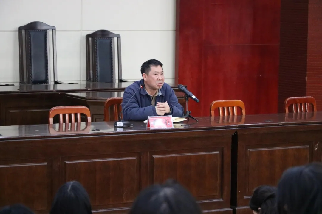 随着学院2020级考研成绩揭晓,考研上线人数较2023年有明显提升,为进一步做好2021级学生升学就业工作,鼓舞士气,增强信心,学院2021级升学就业动员大会于3月14日下午在法学院模拟法庭顺利召开。会议由党委书记邓行主讲,学工办主任张利菊、2021级班导师出席,2021级全体同学参加,学院党委副书记、纪委书记姜珍主持会议。