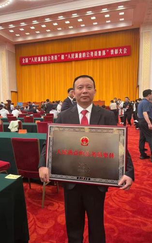 为表彰先进典型、弘扬奋斗精神,激励动员广大公务员和公务员集体奋进新征程、建功新时代,8月30日,全国“人民满意的公务员”和“人民满意的公务员集体”表彰大会在北京举行。其中,湖南省通道侗族自治县人民法院被党中央、国务院授予全国“人民满意的公务员集体”称号。我院1997届校友曹家红代表通道侗族自治县人民法院接受荣誉并受到习近平总书记的亲切接见。