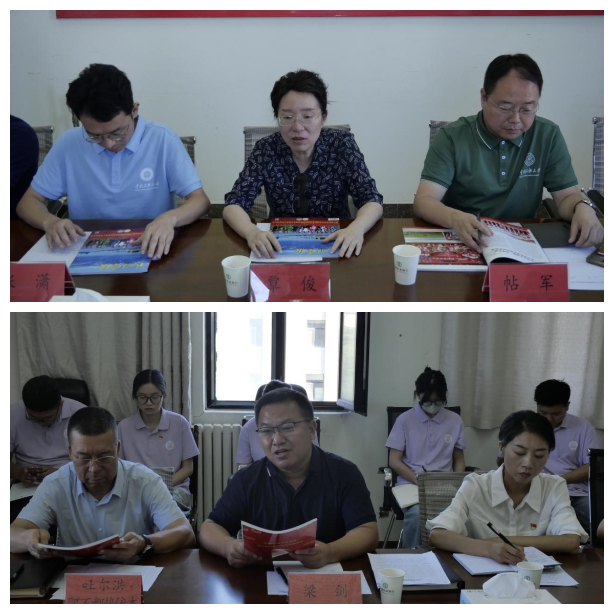 覃俊阐述了本次调研的主要目的: 一是深入开展实地慰问关怀,专程看望我院在博州民委的实习生,全面了解他们的工作适应状况与日常生活保障情况;二是着力深化校地协同合作,通过精准对接地方发展需求与高校优质资源,为后续人才培养规划、就业渠道衔接等工作筑牢基础、搭建桥梁;三是系统总结实践育人经验,重点挖掘大学生服务边疆建设的典型事例,为铸牢中华民族共同体意识提供鲜活案例。座谈会上,覃俊与我院学子亲切交流,细致询问他们的食宿安排和工作进展,再三叮嘱要珍惜在民族工作一线锤炼的宝贵机遇。她鼓励大家充分发挥专业优势,为博州民族团结创建工作添砖加瓦,在基层实践中增长才干,为促进边疆地区发展贡献青春力量。