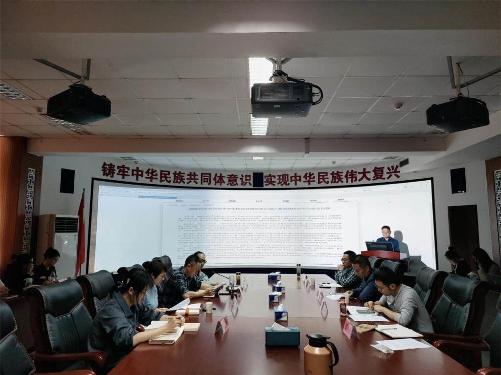 会上,李从浩传达学习《国家民委推进铸牢中华民族共同体意识融入委属高校办学治校全过程》精神,指出要充分学习和领悟相关精神,提高政治站位,加快培育中华民族共同体学一级学科,争做中华民族共同体理论研究与阐释的“天花板”。贺展讲授“学习贯彻习近平文化思想”“学习贯彻习近平总书记教师节重要指示精神”微党课,指出要全面、深刻、准确地学习和领悟习近平文化思想的里程碑意义、生成逻辑和时代意蕴。