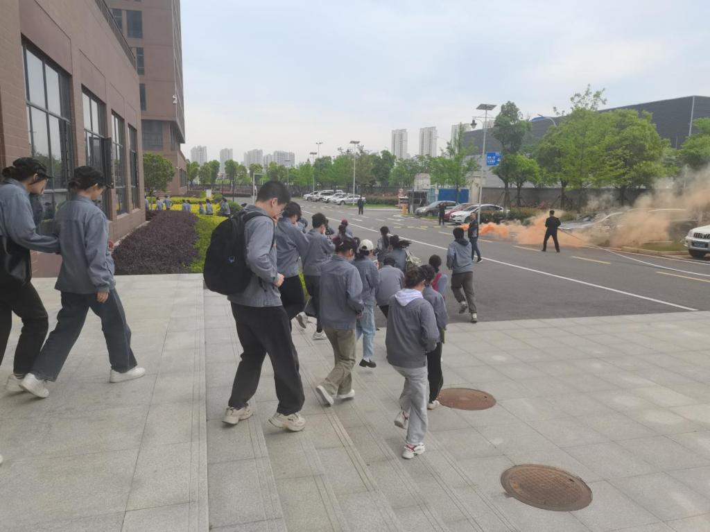 上午12时,疏散警报广播响起,消防疏散演练开始。紧急疏散通道迅速打开,在实验教学与工程训练中心老师和工作人员的指挥下,学生们有序而迅速地从教室撤出,按照指定疏散路径跑出教室,到达指定地点集合。现场工作人员对疏散的学生人数进行清点,并及时向现场指挥员报告疏散情况。