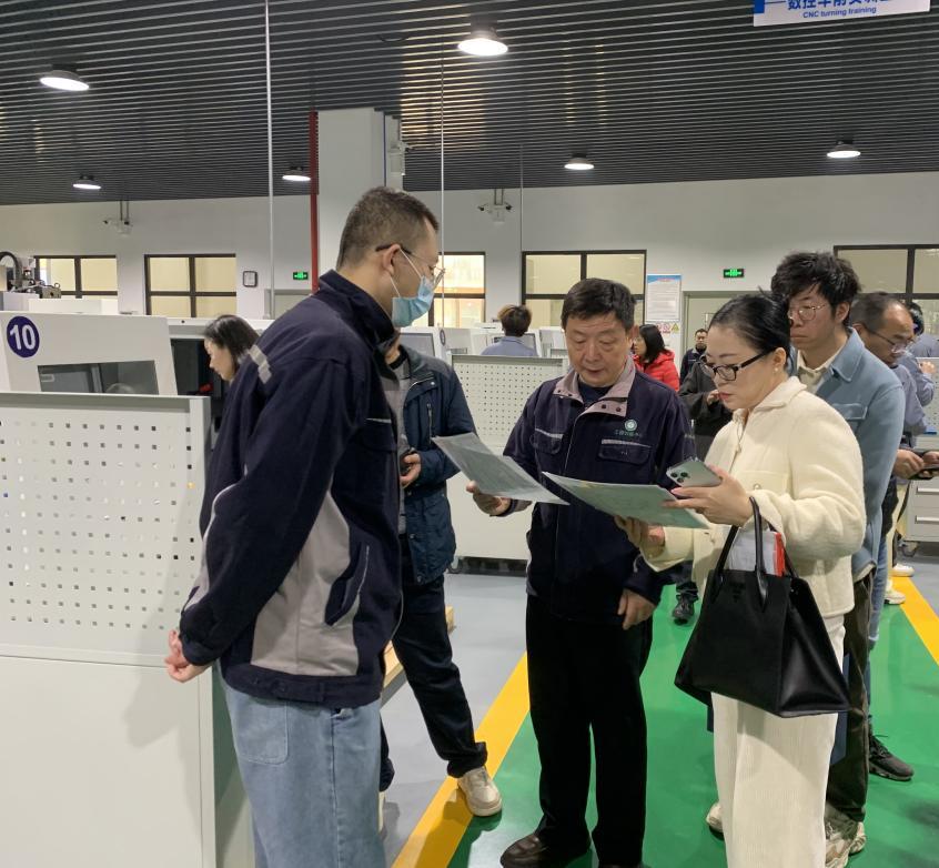 贺军陪同参观了基础制造部实训区、现代制造部实训区、智能制造虚拟仿真实训室、激光加工实训室等,详细介绍了各实训区教学情况,对新开项目进行了体验,并参观了必赢官网与国创中心产教融合基地。