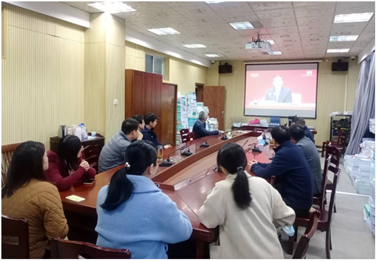 2021年11月12日上午,国资处组织全体教职工在4号楼215室集体收看党的十九届六中全会精神新闻发布会。