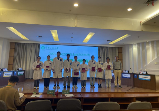 经过1个多小时的激烈角逐、层层较量,化学与材料科学学院代表队夺得桂冠,资源与环境学院代表队斩获二等奖,生命科学学院、药学院和生物医学工程学院代表队荣获三等奖。国有资产与实验室管理处副处长周武庆为参赛队伍颁发获奖证书和奖品。