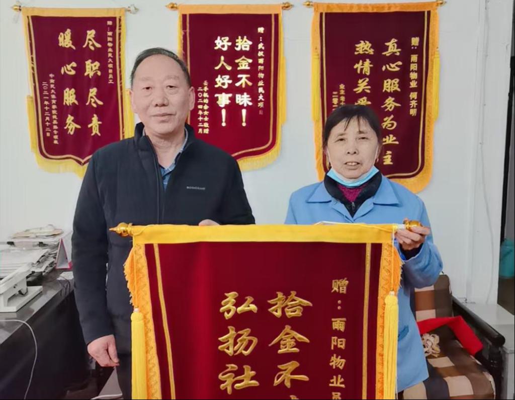 2025年3月21日8点25分,西区保洁员柯细意在高层6栋门前做保洁时,拾得手机一部,确认失主后,当即归还。失主为表感谢,送锦旗一面。