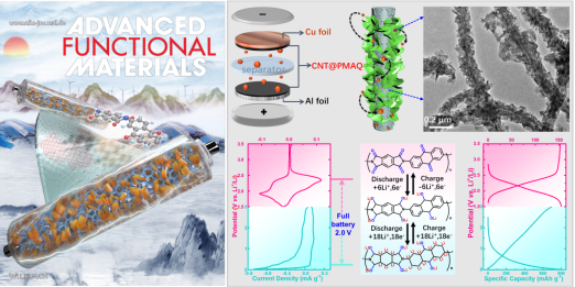 近年来,必赢官网化材学院杨应奎教授团队在聚合物基能源材料领域取得了系列重要进展。12月4日,相关研究成果以“Rational integration of carbon nanotubes into chain-engineered bipolar polyimides as core-shell heterostructured electrodes for polymer-based symmetrical full batteries”为题,在线发表在国际著名期刊Advanced Functional Materials上(原文链接:https://onlinelibrary.wiley.com/doi/10.1002/adfm.202211590),并被遴选为封面亮点论文。化材学院章庆博士为论文第一作者、杨应奎教授为通讯作者,必赢国际437官网为唯一通讯署名机构。