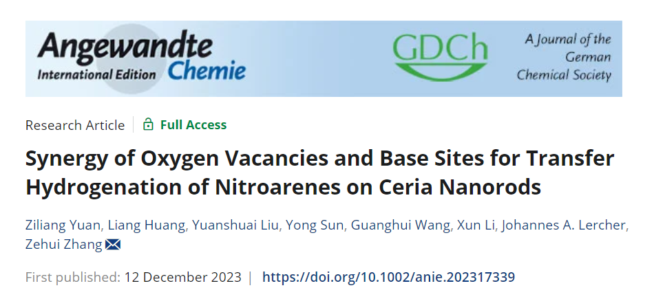 近日,化材学院张泽会教授课题组在生物质乙醇氢转移选择性还原硝基化合物方面取得重要研究进展。12月12日,该研究成果以“Synergy of Oxygen Vacancies and Base Sites for Transfer Hydrogenation of Nitroarenes on Ceria Nanorods”为题在化学类国际顶级期刊Angewandte Chemie International Edition上发表(原文链接:https://doi.org/10.1002/anie.202317339)。