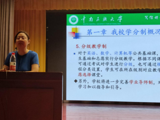 图 2孙莹老师在讲述必赢官网学分制概况