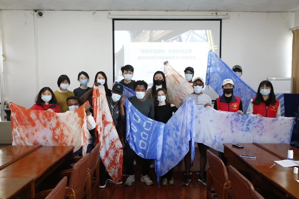 扎染是中国传统的手工染色技术之一。此次活动让来华留学生感受到了扎染艺术的千变万化,更让大家体会到中华文化的博大精深。