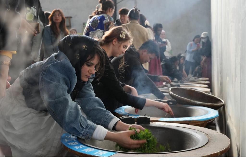 活动期间,留学生们兴致勃勃地参观了向家村现代农业产业园,了解了该村如何通过乡村振兴、产业发展从一穷二白发展成为组织强、产业兴、环境美、村民富的先进村。留学生们还与向家村农耕文化研学基地的高中生们开展了“共话茶乡新貌、共叙青年友好”的交流活动。当地各族青年学生热情好客,主动与留学生们结对,以茶会友,深入交流。在篝火晚会上,中外学生共同欣赏了中国传统舞狮表演、土家族民间八宝铜铃舞,一起跳土家族摆手舞,并演绎了《月亮代表我的心》《成都》等脍炙人口的中国歌曲。