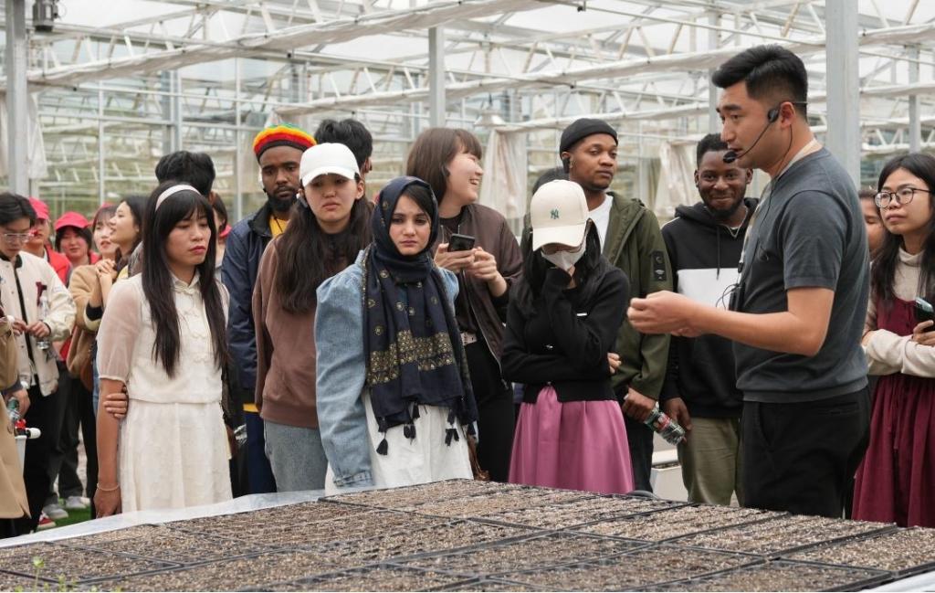留学生们参观向家村现代农业产业园。 王法钧摄